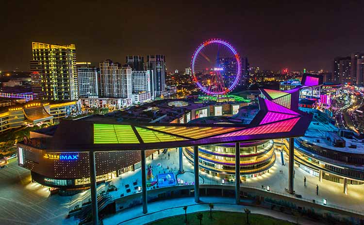 石狮及周边具有发达的服装与制鞋产业,是中国休闲服装之城。城市缺乏公共活动空间,市民缺乏公共聚集点。设计结合石狮当地具有优势的服装及制鞋产业,将项目作为其展示的载体,同时引入多种主题,与商业空间相结合,利用产业优势与特色商业气氛相辅相成,打造绿色城市空间概念,创造公共空间聚集人气,在石狮创造独一无二的城市综合体,同时辐射整个泉州及闽南地区。方案的平面布局规划充分结合基地周边建筑功能属性,创造了多个分区,从而与周边环境共同形成特有的商业气氛。各个分区拥有不同的区域商业氛围,依据所创造的气氛来设计商业建筑立面,用不同风格的立面形成清晰的分区系统。设计旨在将项目打造成石狮的城市秀场,汇聚产业、生活、娱乐主题,成为石狮的一张新名片。